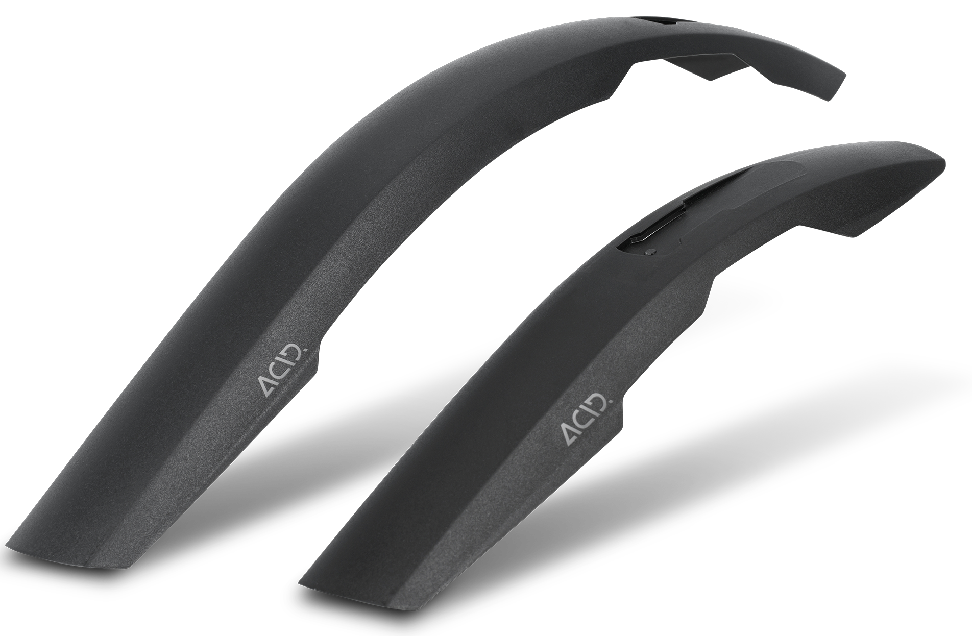 Mit dem neuen ACID Schutzblechset MUD ROOKIE haben wir Kinderschutzbleche in sportlicher Optik entwickelt, die auf unser Mudguard-Portfolio abgestimmt sind. An CUBE Bikes werden sie mit einem winkelverstellbaren Sitzstrebenadapter montiert. Für alle anderen Bikes liegt ein universelles, klassisches Winkelblech bei. Dank der seitlichen Cut-outs lassen sie sich auch an Bikes mit V-Brakes montieren. Dieses Set passt auf 18" und 20" Fahrräder mit einer maximalen Reifenbreite von 2,25".